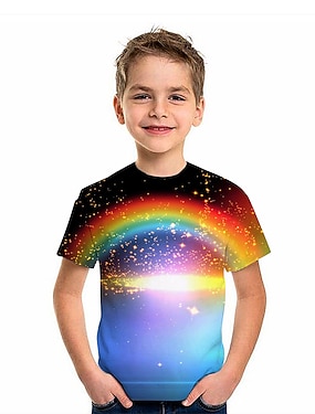 Мальчики 3D Графика Радужный 3D Футболка С короткими рукавами 3D печать Активный Полиэстер Дети