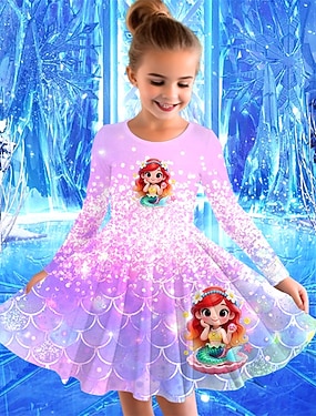 Девушки ' 3D Мультипликация Русалка Платье Длинный рукав Лето Весна Отпуск Повседневные Праздники Принцесса Красивый Милая Дети 4-12 лет Повседневное платье Платье A-силуэта До колена Стандартный