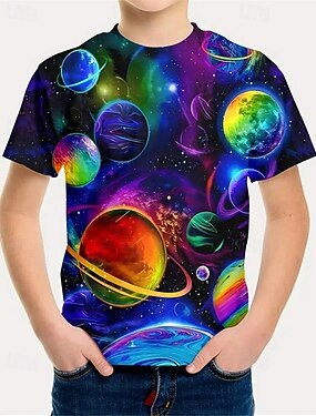 Мальчики 3D Графика Футболка С короткими рукавами Лето Весна Мода Классический Дети 4-12 лет Вырез под горло на открытом воздухе Повседневные Стандартный