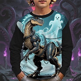 Хэллоуин Мальчики 3D Мультипликация Динозавр Призрак Футболка Длинный рукав Весна Осень Мода Классический Дети 4-12 лет Вырез под горло на открытом воздухе Повседневные Стандартный
