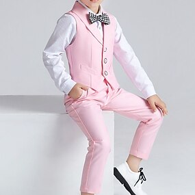 3 предмета Детский праздничный костюм Мальчики Дети Костюм Строгий костюм Костюм / блейзер Набор одежды Официальные Для вечеринок Классический Нежный Сплошной цвет Бант Розовый Светло-синий Хлопок