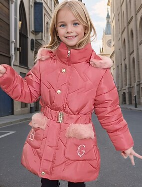 Дети Девочки Пух Пуховик Детская куртка-пуховик Мода на открытом воздухе Хлопок Пальто Верхняя одежда 2-12 лет Осень Черный Розовый с красным