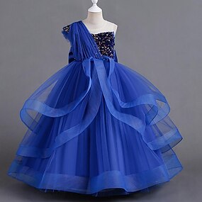 Дети Девочки Платье для вечеринки Сплошной цвет Без рукавов Особые случаи Пайетки Узел галстука Милая Полиэстер Макси Платье для вечеринки Лето Весна Осень 4-12 лет Черный Красный Синий