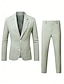 Мужской Льняные костюмы Свадьба на пляже Повседневные Небесно-голубой Полупрозрачный зеленый Весна, осень, зима, лето Костюм Повседневные Легкие Однотонный Стандартная посадка Набор из 2 предметов