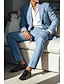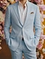 Мужской Смокинги Льняные костюмы Свадьба на пляже Свадьба Небесно-голубой Светло-серый Весна, осень, зима, лето Костюм Повседневные Легкие Однотонный Стандартная посадка Набор из 2 предметов