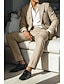 Мужской Смокинги Льняные костюмы Свадьба на пляже Свадьба Бежевый Весна, осень, зима, лето Костюм Лацкан с тупым углом Легкие На каждый день Однотонный Стандартная посадка Набор из 2 предметов