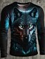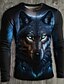 Муж. Животное Волк Футболка Длинный рукав Футболка 3D печать Вырез под горло Рубашка Мода Классический Для улицы Повседневные Синий Чистый синий Оранжевый Лето Весна Одежда S M L XL XXL XXXL