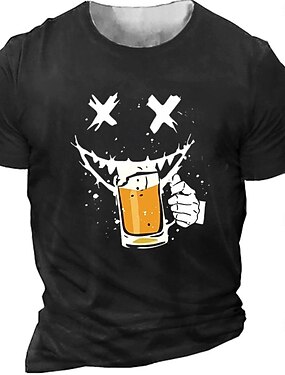 Муж. Пиво Октоберфест Футболка С короткими рукавами Футболка 3D печать Вырез под горло Рубашка Ретро На каждый день Для улицы Повседневные Бар Черный Весна лето Одежда S M L XL 2XL 3XL