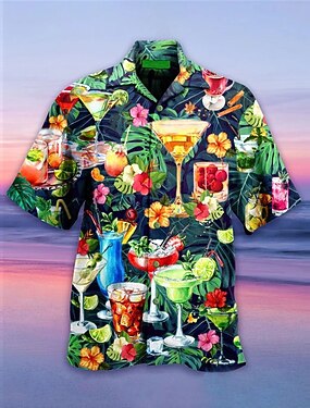 Муж. Фрукты коктейль Рубашка Гавайская рубашка Рубашка Алоха С короткими рукавами Рубашка Отложной тропический Мода Гавайский Повседневные Гавайский Праздники Зеленый S M L