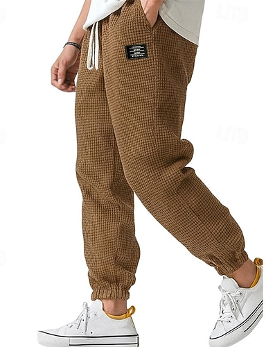 Муж. Вафельная ткань Штаны Джоггеры Повседневные брюки Вафельные штаны Кулиска Сплошной цвет Комфорт Полная длина на открытом воздухе Повседневные Уличная одежда Мода Классический