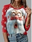 Новогодняя тематика Жен. Футболка Графика Дед Мороз Мода На каждый день Длинный рукав Вырез под горло Круглый вырез Обычные топы Повседневные выходные С принтом Красный Синий Зеленый
