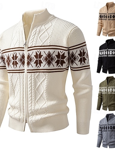 Муж. Вязаная ткань Кардиган Свитер с узором Fair Isle Рельефный узор Вязать Обычные топы Трикотаж Полотняное плетение Воротник-стойка Отпуск Мода Повседневные На каждый день Одежда Зима Весна & осень