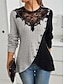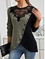Жен. Блуза Сплошной цвет Элегантный стиль Стиль Классический Длинный рукав Вырез под горло Обычные топы Повседневные Кружева Пэчворк Военно-зеленный Светло-лиловый Светло-серый Весна Осень Зима