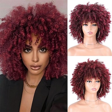 Красный афро парик для чернокожих женщин без клея парик надел и пошел 10 дюймов кудрявый афро парик бордовый синтетические пышные парики для повседневной вечеринки косплея и использования на Хэллоуин