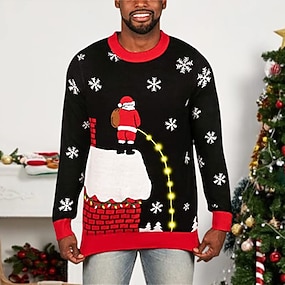 уродливый рождественский свитер мужские смешные свитера Санта-Клаус принт снежинки вязаный пуловер джемпер трикотаж новогодний свитер повседневная одежда отпуск длинный рукав круглый вырез черный