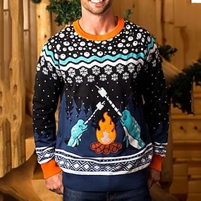 уродливый рождественский свитер мужской свитер-пуловер вязаный свитер джемпер трикотаж новогодний свитер повседневная одежда для отпуска свитера с длинным рукавом и круглым вырезом темно-синий