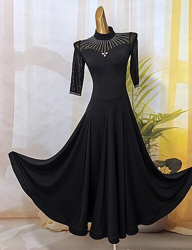 Бальные танцы Платье Стразы Жен. Выступление Для вечеринок Длинный рукав Сетка