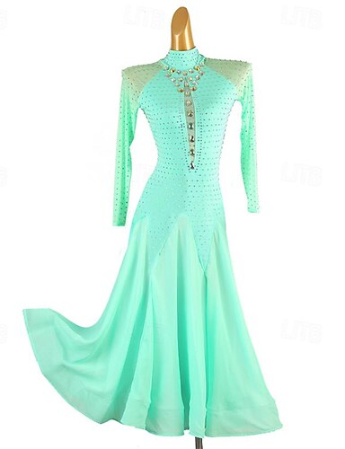 Бальные танцы Платье Стразы Жен. Выступление Учебный Длинный рукав Спандекс