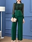 Из двух частей Брючный костюм Платье для матери невесты Элегантный стиль Винтаж Вырез под горло До щиколотки Полиэстер Длинный рукав с Цветовые блоки