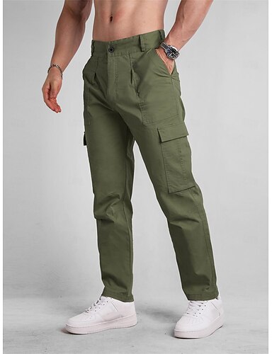 Муж. Брюки карго Штаны Пуговицы Мульти карман Полотняное плетение Пригодно для носки Повседневные Праздники Спорт Мода Черный Военно-зеленный