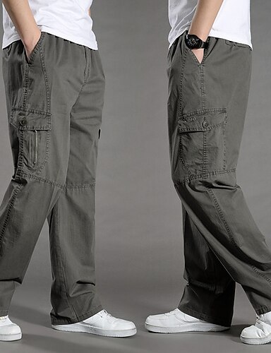 Муж. Брюки карго Штаны Эластичная талия Мульти карман Полотняное плетение Пригодно для носки на открытом воздухе Повседневные Отдых и туризм Мода Классика Черный Военно-зеленный