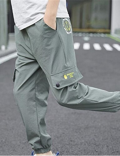 Дети Мальчики Брюки Брюки карго Брюки Пэчворк Карман Сплошной цвет Быстровысыхающий Дышащий Комфорт Брюки на открытом воздухе Хлопок Повседневные Классический Черный Военно-зеленный Хаки Средняя Талия