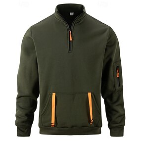 Муж. Толстовка Толстовка с застежкой-молнией Черный Военно-зеленный Тёмно-синий Коричневый Хаки Половина молния Полотняное плетение Половина почтового индекса