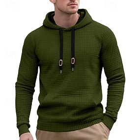 Муж. Толстовка Толстовки с вафельным принтом Толстовка с капюшоном и пуловером Черный Военно-зеленный Темно синий Хаки Светло-серый Капюшон Полотняное плетение Пэчворк Цветовые блоки Текстура