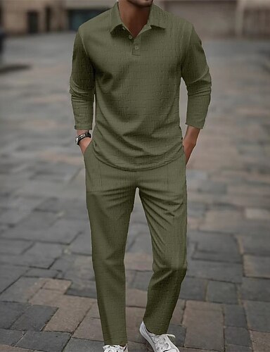 Муж. Рубашка для гольфа Рубашки-поло для гольфа Офис Повседневные Лацкан Длинный рукав Классический Современное Полотняное плетение Жаккард Пуговицы Весна Осень Стандартный