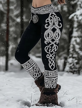 Жен. Леггинсы Отпуск Винтаж Этнический стиль Полная длина ЗавышеннаяPantsНовогодняя тематика Графика Каждый В снежинку 3D печать Быстровысыхающий Воздухопроницаемость Мягкий Эластичная
