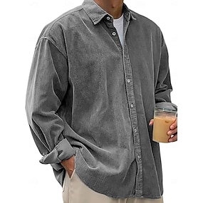Муж. Вельветовая рубашка Рубашка-карго Черный Коричневый Зеленый Серый Длинный рукав Отложной Школа Учебный Рюши Одежда Винтаж На каждый день