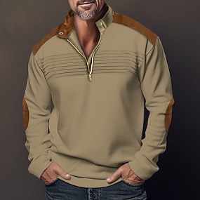 Муж. Футболка Рубашка с длинным рукавом Длинный рукав Четверть молния Весна & осень Полотняное плетение Мода Оригинальный рисунок Классический Пэчворк Передний карман Отпуск Для улицы На выход