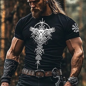 Муж. Викинг Футболка С короткими рукавами Футболка 3D печать Вырез под горло Рубашка Мода Повседневные Классический Для улицы Повседневные Черный 1 Черный Черный 2 Лето Весна Все сезоны Одежда S M L
