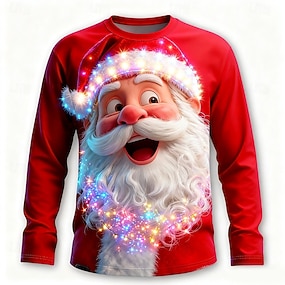 Новогодняя тематика Муж. Дед Мороз Смешной Футболка Длинный рукав Футболка 3D печать Вырез под горло Рубашка Мода Классический 3D Для улицы Повседневные Красный Лето Весна Одежда S M L XL XXL XXXL