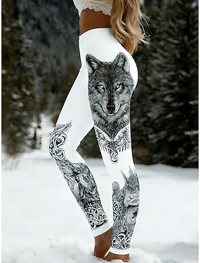 Жен. Леггинсы Отпуск Винтаж Этнический стиль Полная длина Завышенная Графика Животное Мягкий Удобный Эластичная Повседневные Дом на открытом воздухе Черный Белый Морской синий Синий Весна Осень Зима