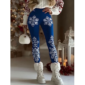 Жен. Брюки Леггинсы Уютные леггинсы Отпуск Винтаж Уличный стиль Полная длина Средняя талияPantsНовогодняя тематика Графика В снежинку Рождество Эластичная талия С принтом