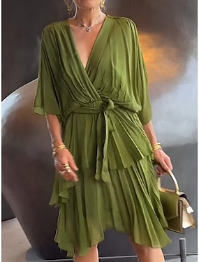 Жен. Мини-платье Коктейльные платья Свадебное платье для гостей Шифон Мода Современное на открытом воздухе Отпуск Стандартный Полотняное плетение Рукав 3/4 V-образный вырез Зеленый Лето Весна Осень