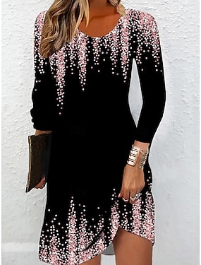 Женское мини-платье с круглым вырезом длинный рукав платье-корсет платье-петит футболка-платье т-платье элегантное стильное уличный стиль повседневная обычная посадка цветочный розовый лето