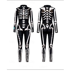 Семейный вид Хэллоуин Комбинезон Черепа Шаблон Хэллоуина Для улицы С принтом Черный Белый Розовый Длинный рукав Подходящие наряды