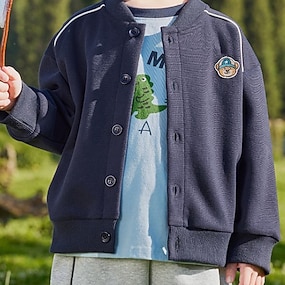 Дети Универсальные Бейсбольные куртки Верхняя одежда Сплошной цвет Длинный рукав Комфорт Пуговицы Мягкий Пальто на открытом воздухе Хлопок Мода Повседневные Синий Серый Весна Осень 4 года +