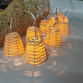 Декоративный фонарь с гирляндой из ротанга - 10 светодиодов, проволочная гирлянда в форме шара, работающая от батареек/солнечных батарей, для помещений, улицы, патио, водонепроницаемая гирлянда для