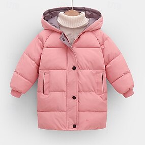 Дети Универсальные Пух Пуховик Верхняя одежда Сплошной цвет Длинный рукав Карман Пальто на открытом воздухе Повседневные Черный Розовый Зеленый Осень Зима 4 года +