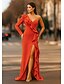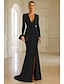 Русалка С коротким шлейфом Выпускные платья Вечернее платье С пышной юбкой Торжественное платье Элегантный стиль Стиль знаменитостей Длинный рукав V-образный вырез Официальные Свадьба Стретч-креп с