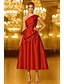 А-силуэт Ниже колена коктейльные платья Элегантный стиль Без рукавов На одно плечо Официальные Свадьба Сатин с Бант(ы) Рюши