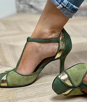 женские двухцветные туфли-лодочки на высоком каблуке в стиле ретро – розовые и синие с ремешком на щиколотке, идеально подходят для нарядов в винтажном стиле и повседневных шикарных образов