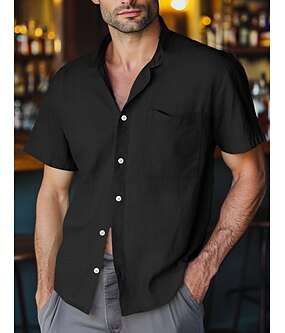Муж. Рубашка Повседневная рубашка Кнопка рубашка Полотняное плетение Отпуск Для улицы Черный Белый Цвет хаки Серый С короткими рукавами Лацкан Лето Одежда Кнопка вниз