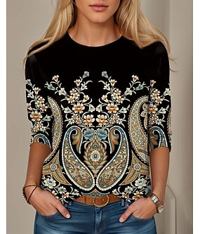 женская футболка базовая повседневная с цветочным принтом короткий рукав обычные топы круглый вырез повседневный черный белый синий фиолетовый летний