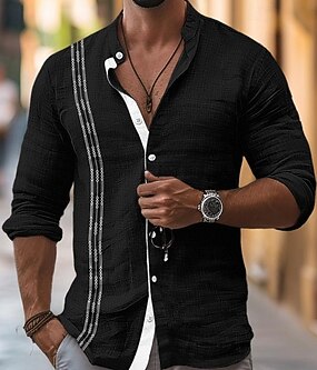 Муж. Рубашка Рубашка с воротником-стойкой Поповер Рубашка Летняя рубашка Одежда для пляжа Кнопка рубашка Полотняное плетение Отпуск Кьюриз Черный Белый Розовый Зеленый Длинный рукав Воротник-стойка