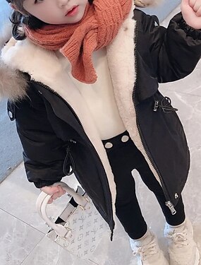 Дети Девочки Пух Сплошной цвет Уличный стиль Меховая оторочка Молния Карман Школа Пальто Верхняя одежда 4-12 лет Зима Черный Винный Темно синий