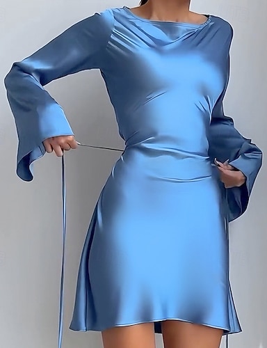 Жен. Мини-платье Платье для вечеринки Коктейльные платья Атласное платье Элегантный стиль Современное Для вечеринок Коктейльная вечеринка Стандартный Полотняное плетение Длинный рукав Вырез под горло